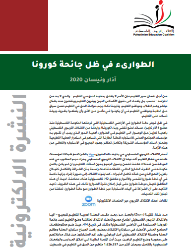 نشرة الائتلاف التربوي الفلسطيني (الطوارىء في ظل جائحة كورونا ) .