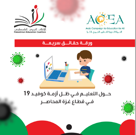 الائتلاف التربوي الفلسطيني والحملة العربية للتعليم للجميع يصدران ورقة حقائق حول التعليم في قطاع غزة حيث تم تسليط الضوء على الوضع ما قبل أزمة كوفيد19 من حيث نسبة البطالة والحصار والصراع المتكرر على قطاع غزة وتأثيره على الحالة الاجتماعية والاقتصادية والوضع النفسي للأطفال والمعلمين، والضرر الذي تعرضت له المدارس التابعة لوزارة التربية والتعليم والأونروا خلال الهجمات المتكررة من قبل الاحتلال الإسرائيلي، كما تناولت الورقة مدى تأثر قطاع التعليم في غزة خلال أزمة كوفيد19 من إغلاق كافة المرافق التعليمية، وضعف نجاعة التعليم عن بعد لضعف البنية التحتية وأهمها انقطاع التيار الكهربائي وتقطع خدمة الانترنت وخاصة في المناطق المهمشة في غزة وهذا أدي لعدم وصول الجميع للتعليم وخاصة الطلبة من ذوي الإعاقات المختلفة، وتم طرح الاحتياجات الأساسية الملحة في ظل أزمة كوفيد 19 لمواصلة التعليم ووصول الجميع له في ظل ظروف صحية أمنه.