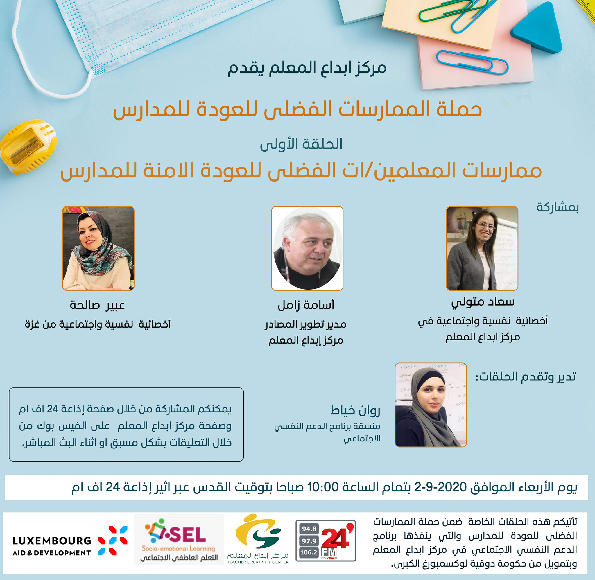 حلقات اذاعية مصورة حول ممارسات المعلمين/ات الفضلى للعودة الامنة للمدارس