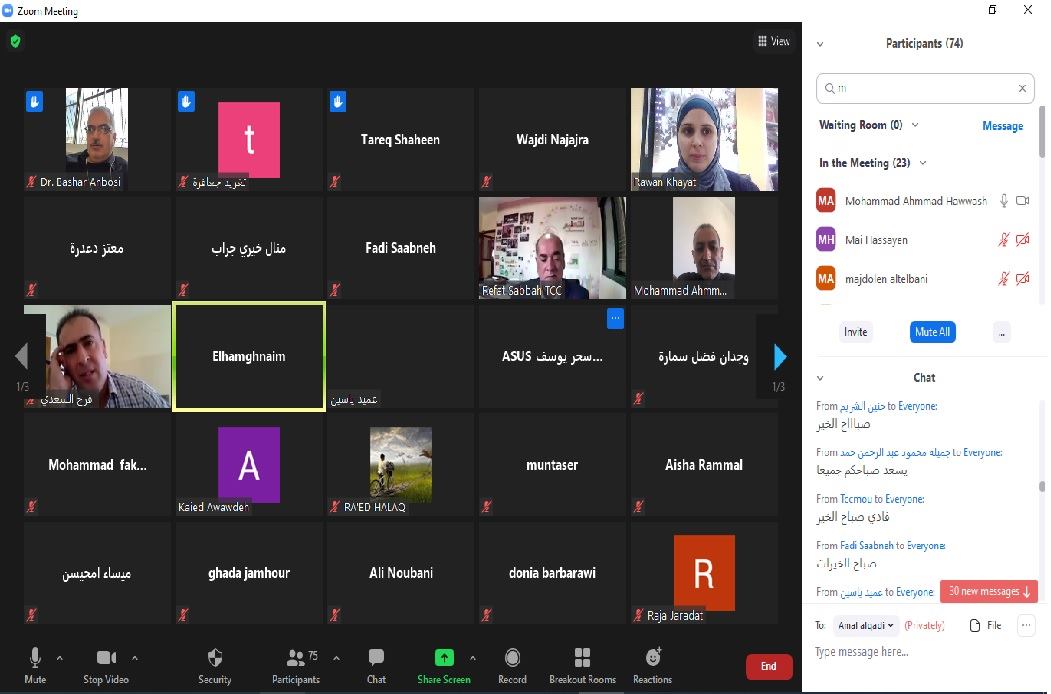 السبت ال موافق7-11-2020 نظم كل من وزارة التربية والتعليم ومركز ابداع المعلم ملتقى الارشاد الأول عند بعد والذي استهدف ما يقارب 103 مرشد/ة من جميع مديريات التربية في الضفة الغربية، نظم هذا الملتقى من قبل الإدارة العامة للإرشاد والتربية الخاصة في وزارة التربية وبمشاركة المدير العام الأستاذ محمد الحواش، وبرنامج الدعم النفسي الاجتماعي في مركز ابداع المعلم بمشاركة المدير العام الأستاذ رفعت الصباح.