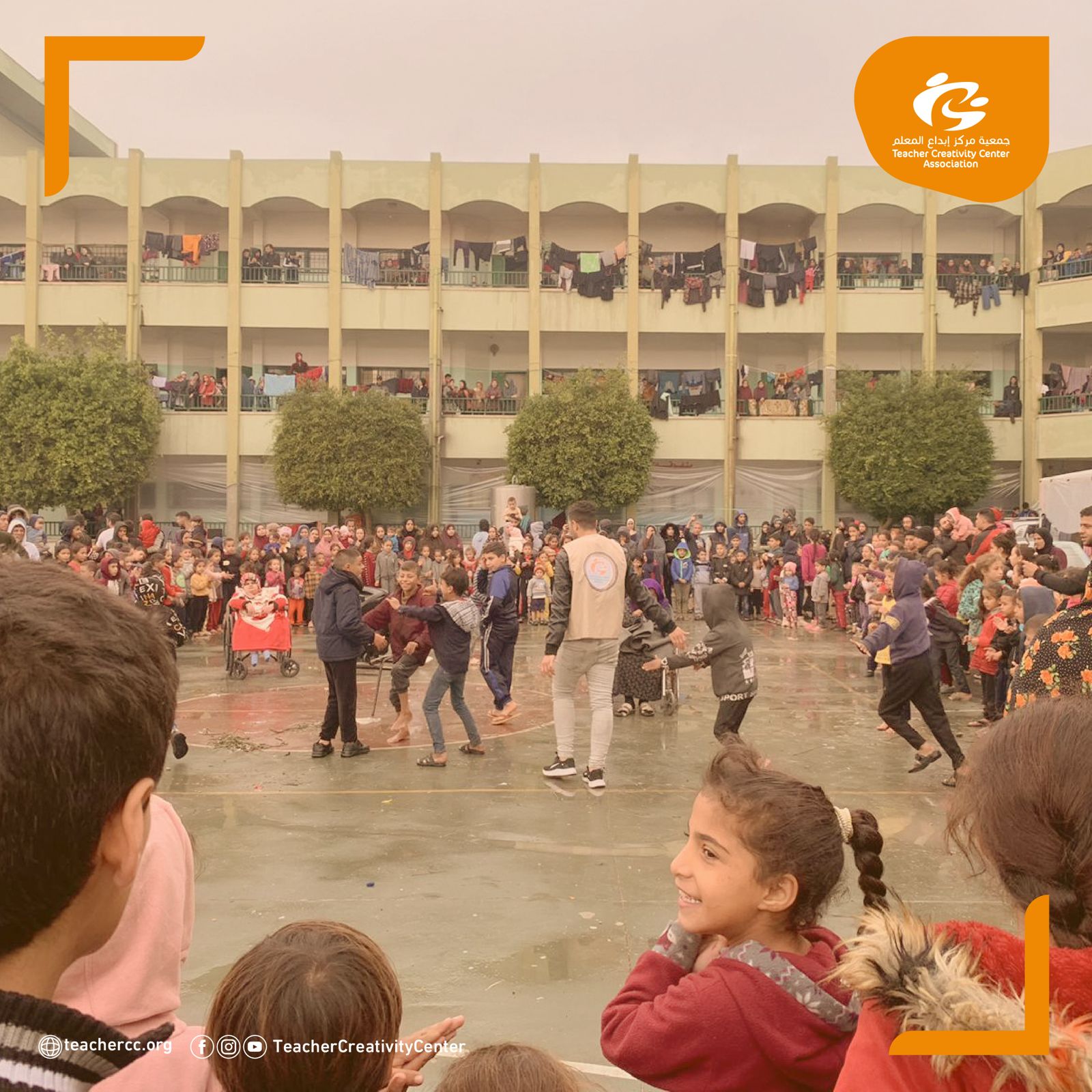 فعاليات تفريغ نفسي للأطفال النازحين في مدرسة ايواء احسان الاغا - رفح ، ضمن برنامج الدعم النفسي الاجتماعي في قطاع غزة ،