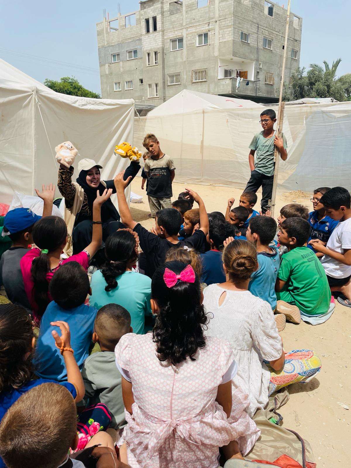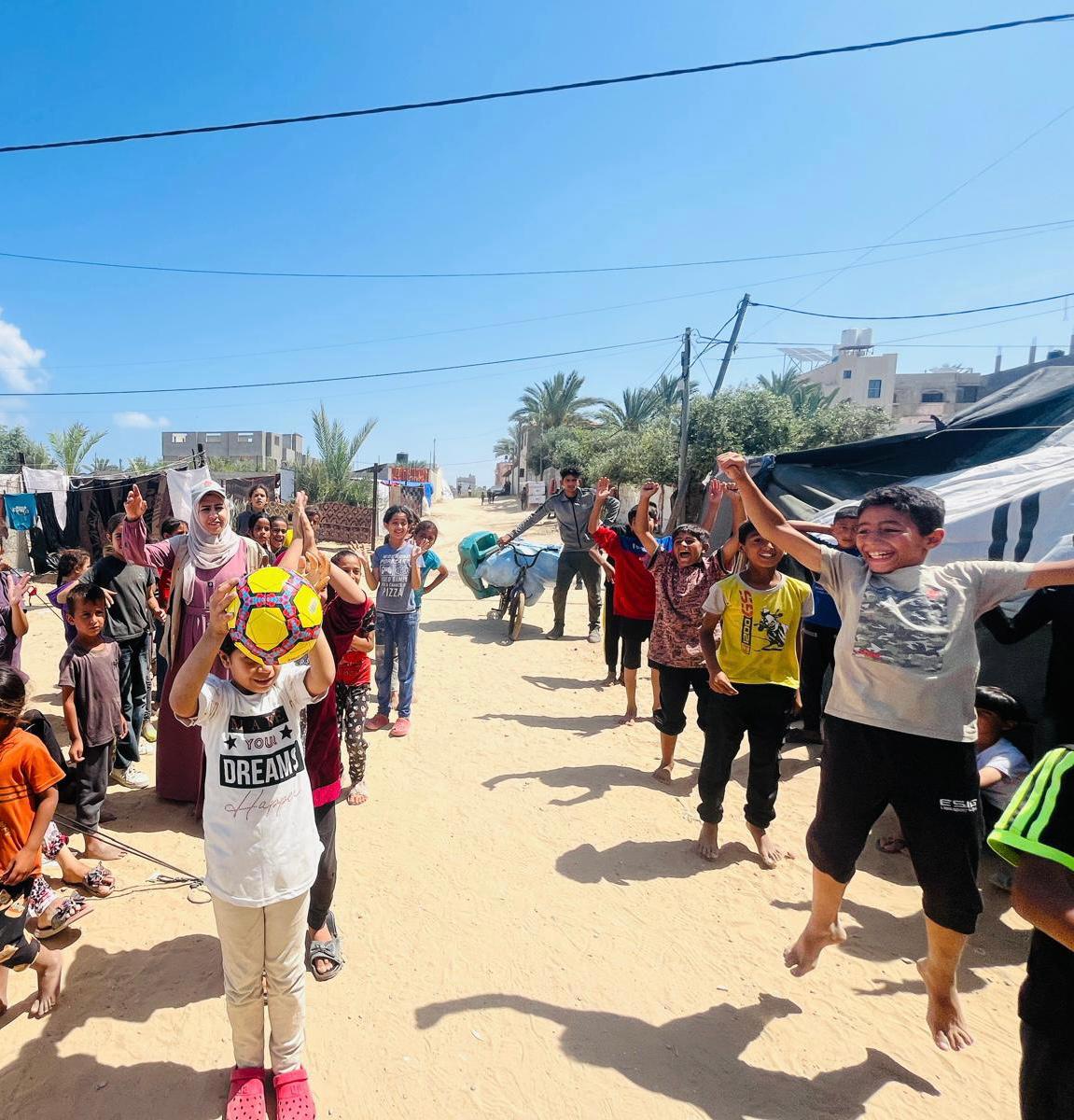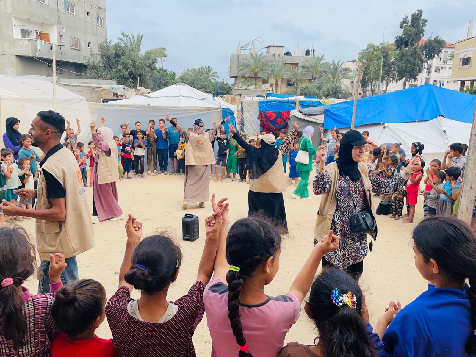 غزة- تنفذ جمعية مركز إبداع المعلم بالشراكة مع الحملة اليابانية من أجل أطفال فلسطين CCP Japan في مركز إيواء شراب مشروع "توفير الغذاء والمواد غير الغذائية وتوفير حماية الأطفال والأسر في غزة(المرحلة الثانية)" ، حيث يتم استهداف8 مراكز إيواء في مدينة دير البلح ويتم العمل بمعدل 4 أيام في كل مركز، بمشاركة 6 منشطين و8 أخصائيين متخصصين في الدعم النفسي الاجتماعي.