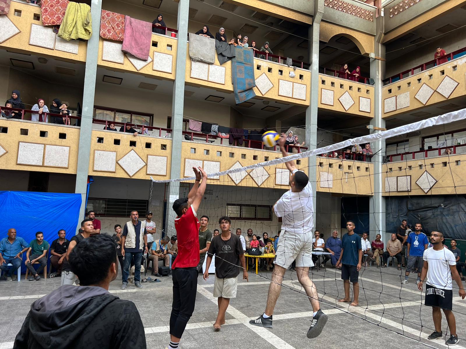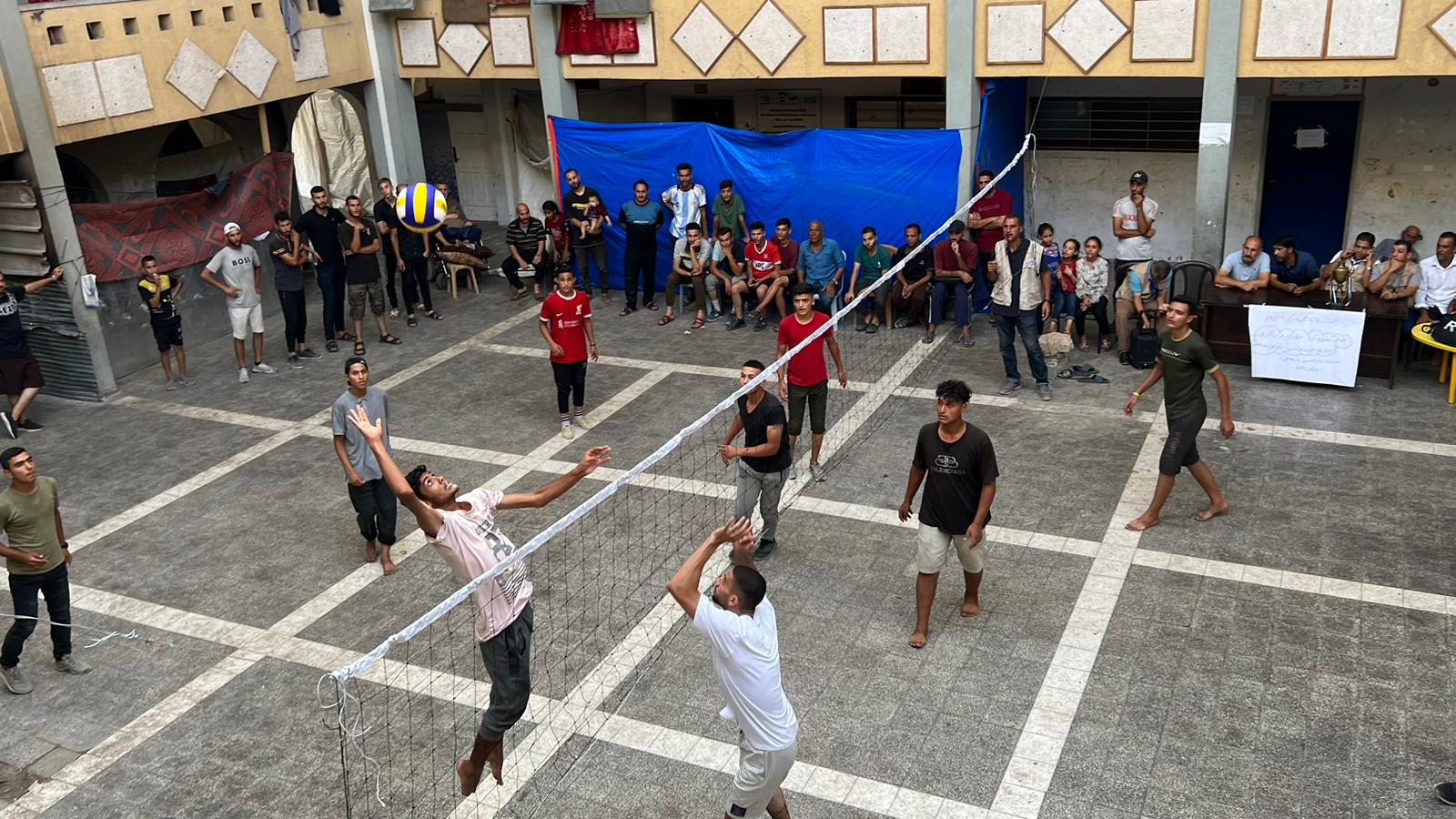 ضمن المبادرة المستمرة لدعم النازحين في قطاع غزة، نظم فريق الصحة النفسية اليوم فعالية رياضية في مركز إيواء بيت المقدس جنوب القطاع، تمثلت الفعالية في بطولة لكرة الطائرة، شارك فيها الشباب النازحون من مراكز إيواء خانيونس، شهدت البطولة مشاركة فاعلة من الشباب، الأهالي، والأطفال، بالإضافة إلى حضور أعضاء لجنة الطوارئ.