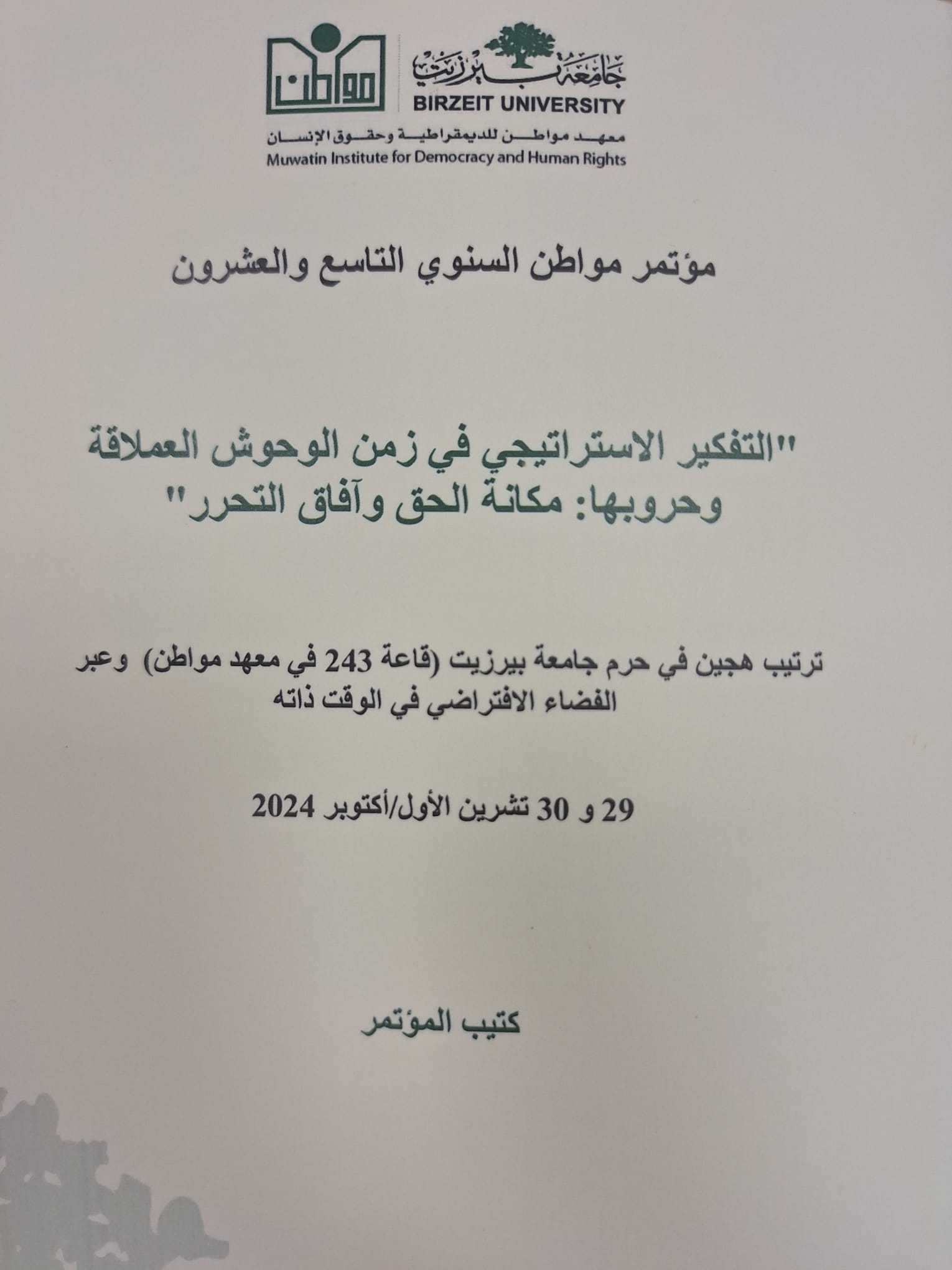 شارك مركز إبداع المعلم، ممثلاً بمنسقة برنامج المواطنة أماندا بحبح ومديرة دائرة التطوير بشرى حمايل، في مؤتمر "مواطن" السنوي التاسع والعشرين، الذي نظمه معهد مواطن للديمقراطية وحقوق الإنسان، وعُقد في جامعة بيرزيت يومي الثلاثاء والأربعاء، 29 و30 أكتوبر 2024. جاء المؤتمر هذا العام تحت عنوان "التفكير الاستراتيجي في زمن الوحوش العملاقة وحروبها: مكانة الحق وآفاق التحرر"، حيث ركز على القضايا الفلسطينية في سياقها الأوسع على المستويين الإقليمي والعالمي، بمشاركة واسعة من أكاديميين وباحثين وخبراء ونشطاء من مختلف أنحاء العالم.
