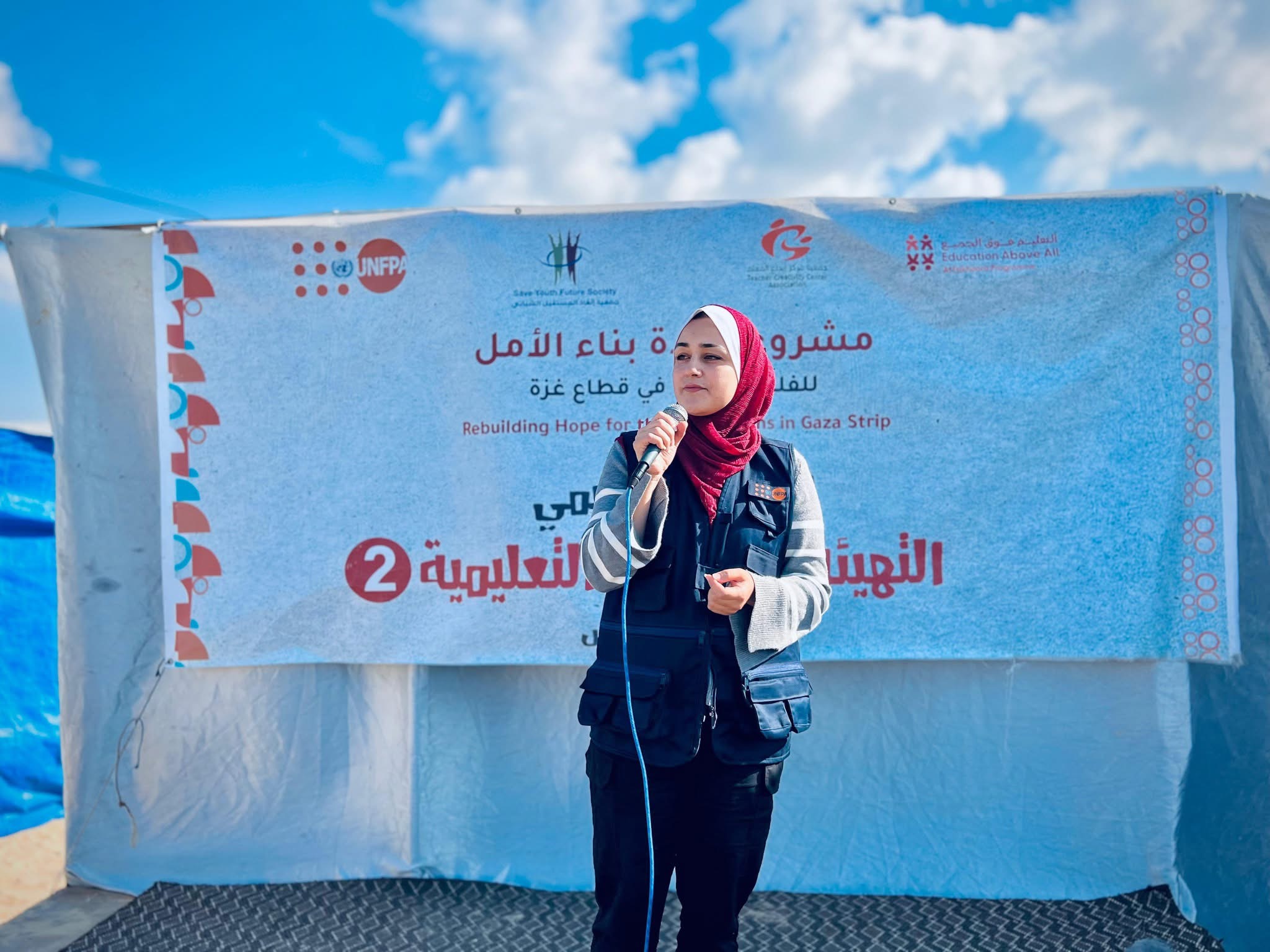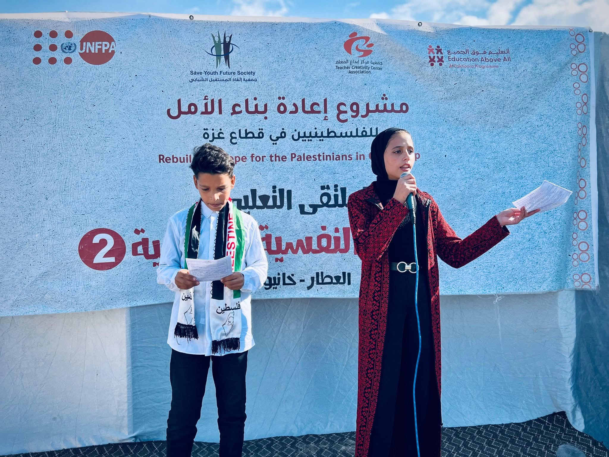 على أصوات الأمل وابتسامات الأطفال، ومن بين خيام النازحين في منطقة مواصي خان يونس جنوب قطاع غزة، اختتم مركز إبداع المعلم، بالشراكة مع جمعية إنقاذ المستقبل الشبابي وبدعم من صندوق الأمم المتحدة للسكان، المرحلة الثانية من مبادرة "بناء الأمل" للتهيئة النفسية والتعليمية للأطفال النازحين.