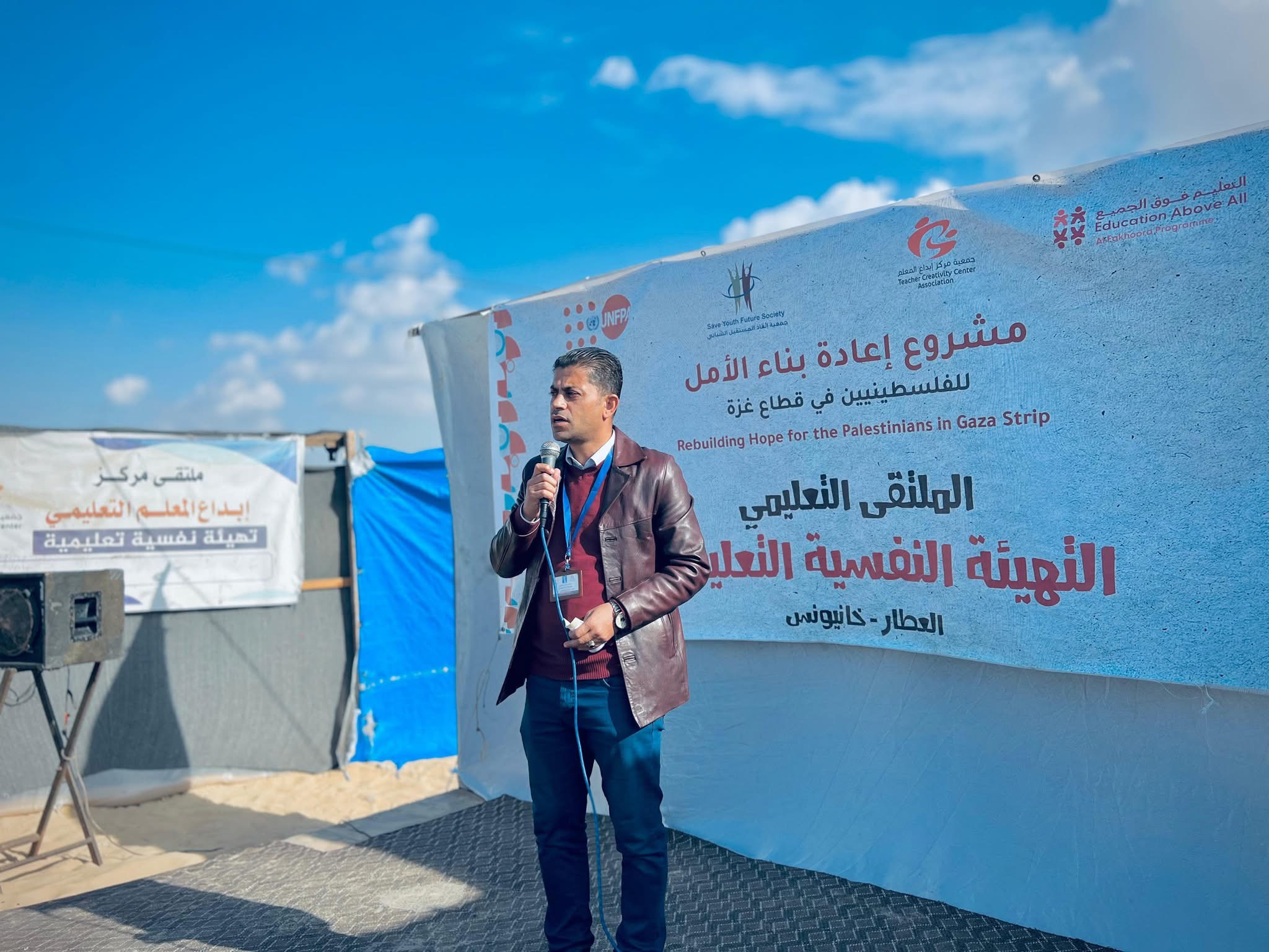 من جانب المهندس حازم أبو حبيب من مؤسسة "التعليم فوق الجميع" اكد على استمرارية دعمه للتعليم، مشددًا على أهمية مخرجات الأطفال التي تحمل الجميع مسؤولية مضاعفة لمساندتهم. كما قدّم شكرًا خاصًا للمتطوعين والفريق الشبابي الذي ساهم في إنجاح المبادرة.