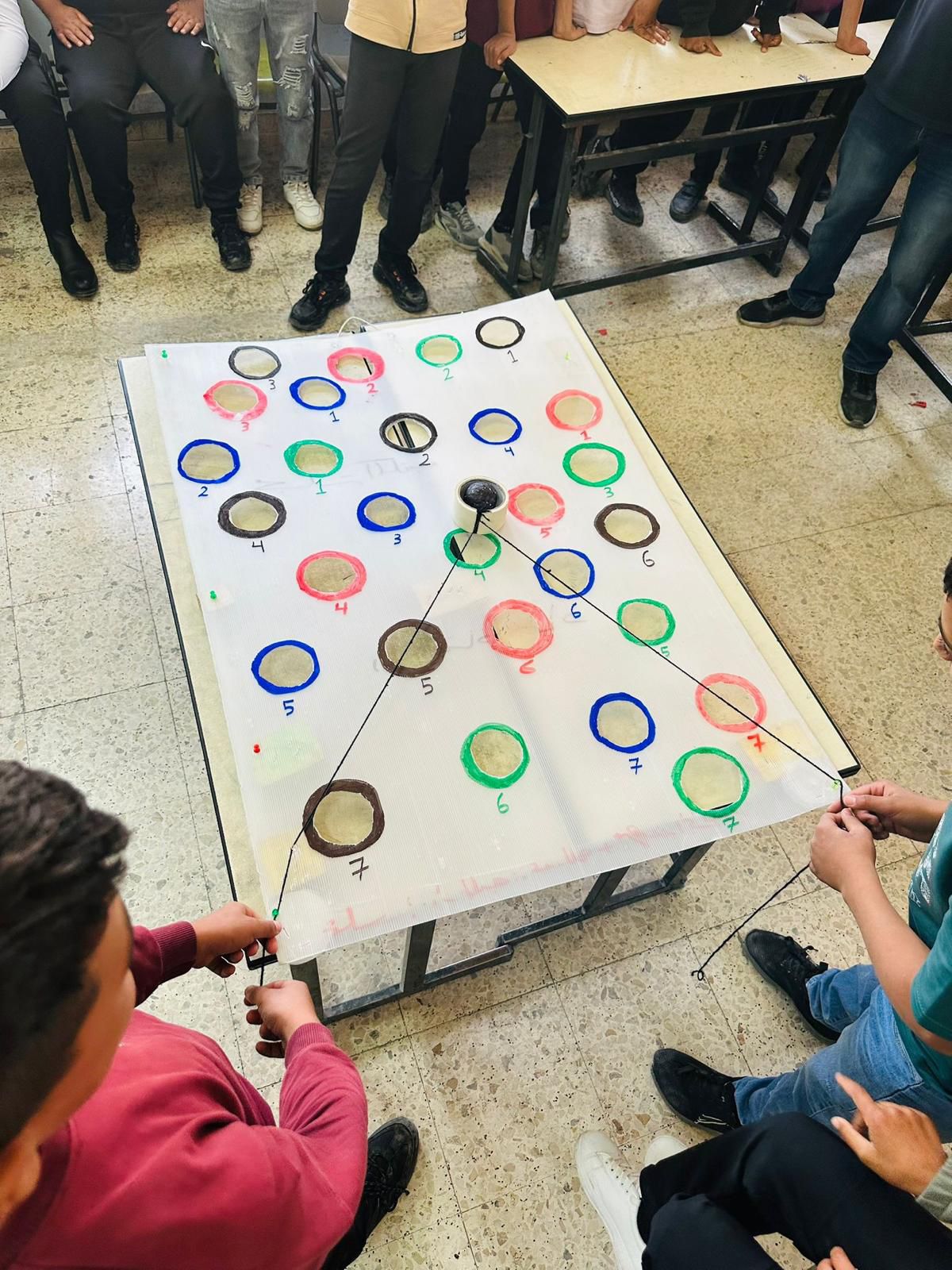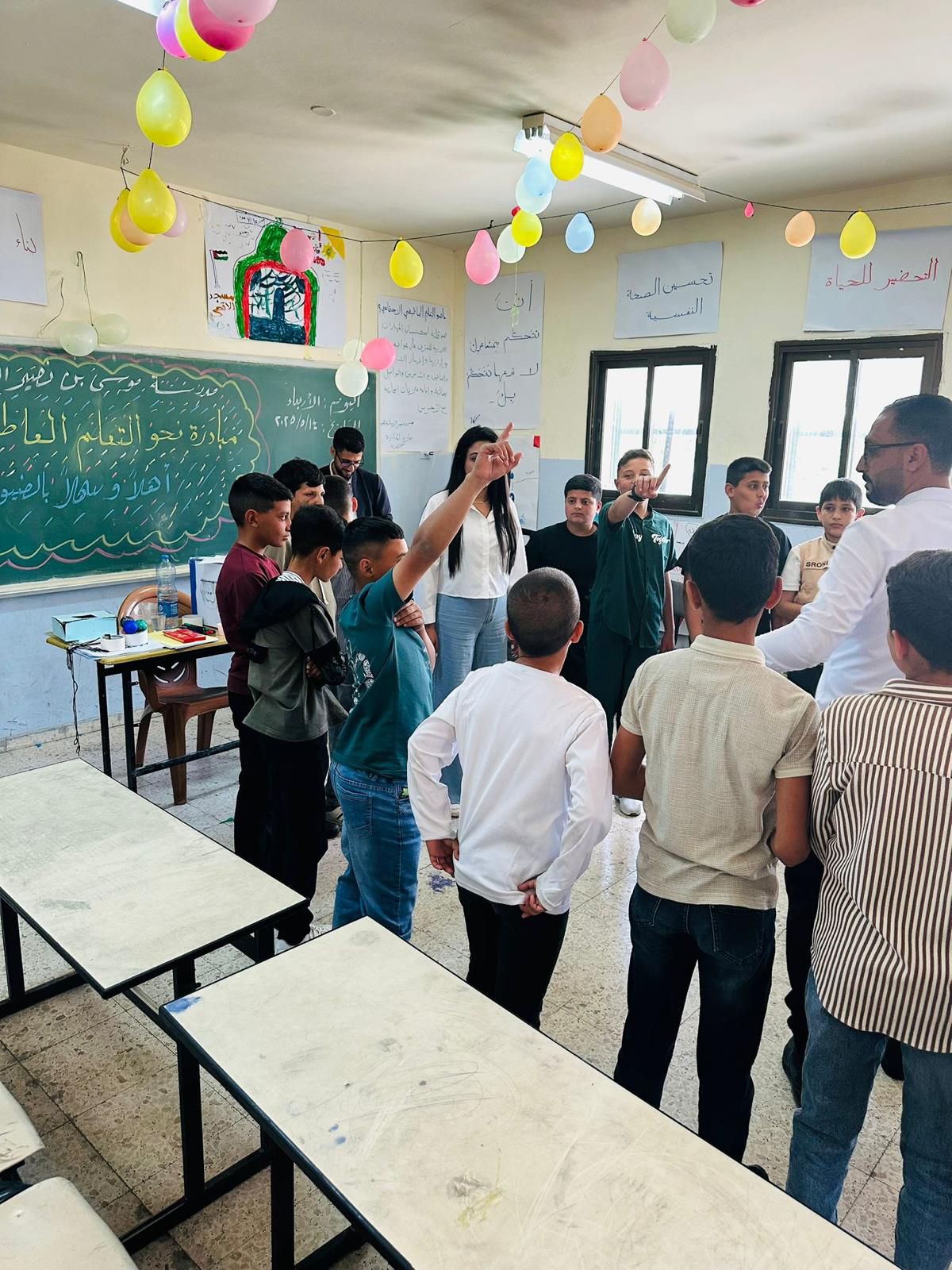 وتخلل اللقاء الختامي مجموعة متميزة من الأنشطة التفاعلية والإبداعية التي قادتها طالبات جامعة الخليل – إسراء أبو نجمة وعروب جرادات – ركزت على التفريغ الانفعالي، والتواصل العاطفي، وتعزيز مهارات التكيف الإيجابي لدى الطلبة. فمارس المشاركون تمارين الاسترخاء والتنفس العميق، واستخدموا أدوات رمزية مثل البالونات وصندوق التأمل للتخلص من المشاعر السلبية، في حين أتاحت الألعاب الجماعية مثل "القائد السري" و"تحدي الطابات" و"صندوق المشاعر" مساحات آمنة للضحك والتعبير والتعاون.
