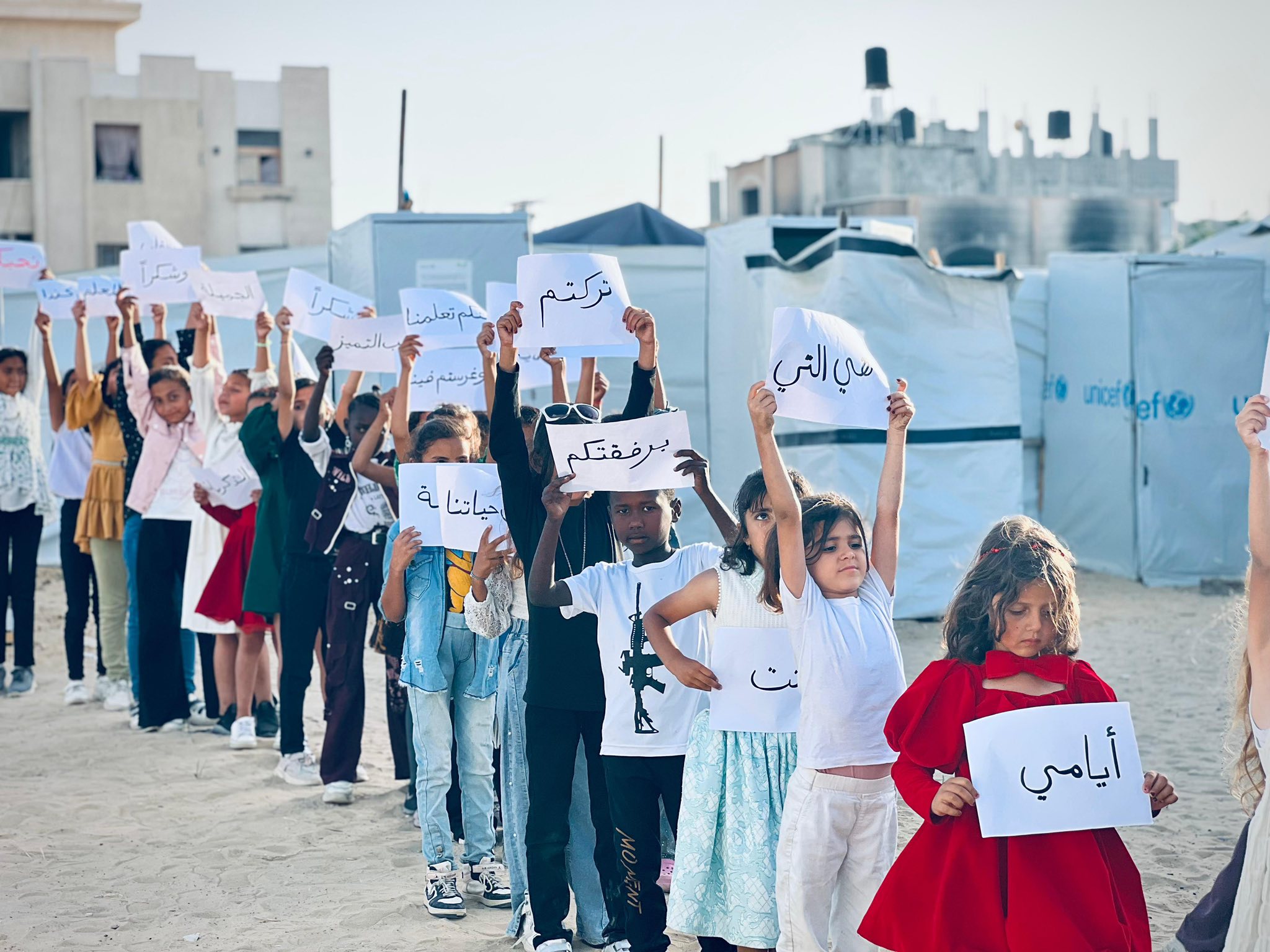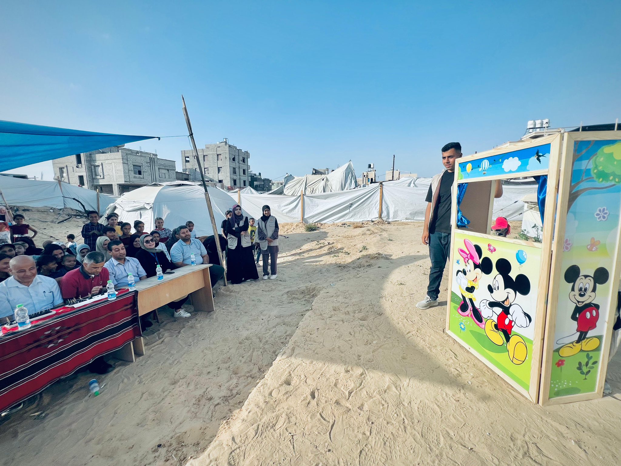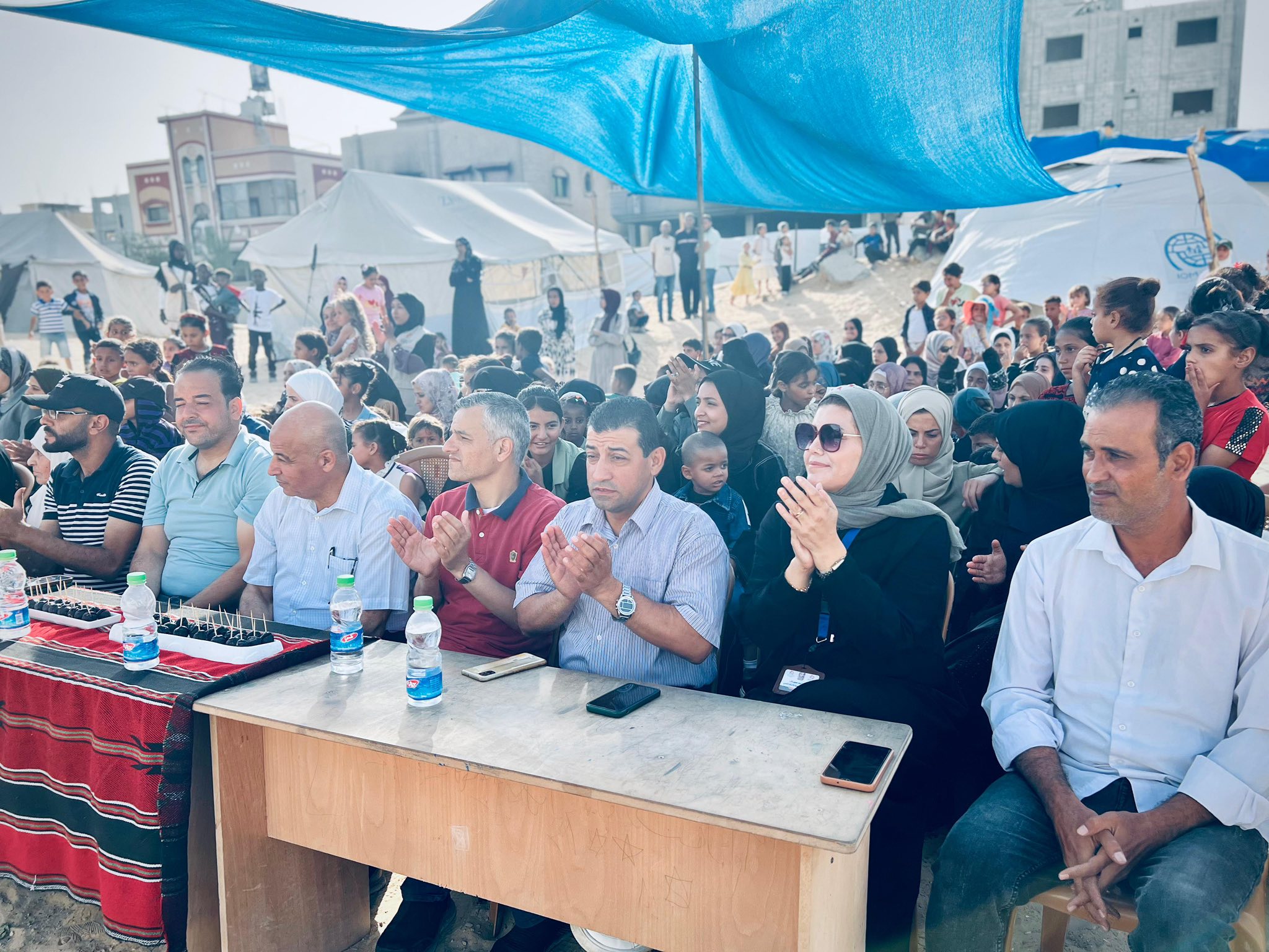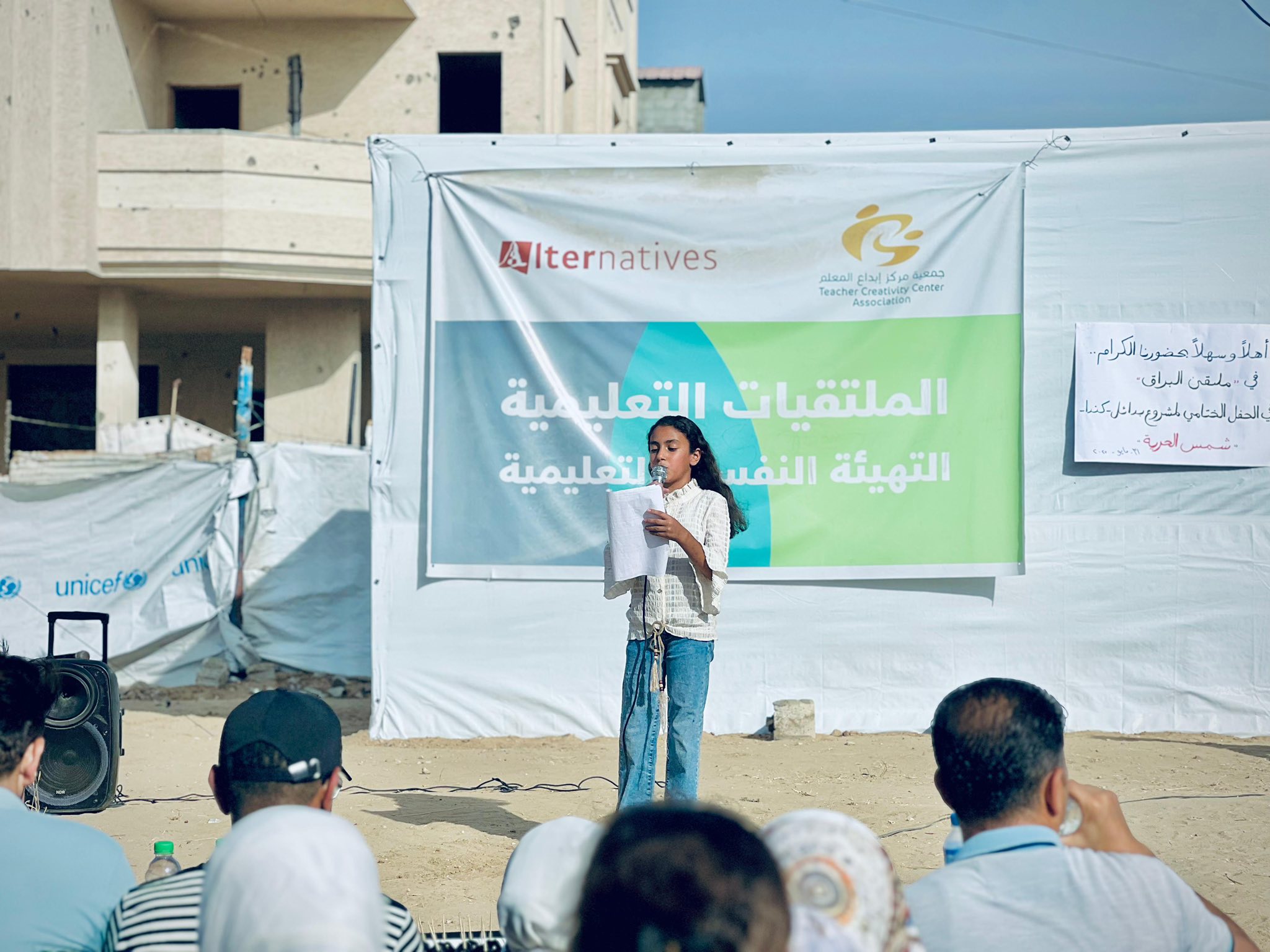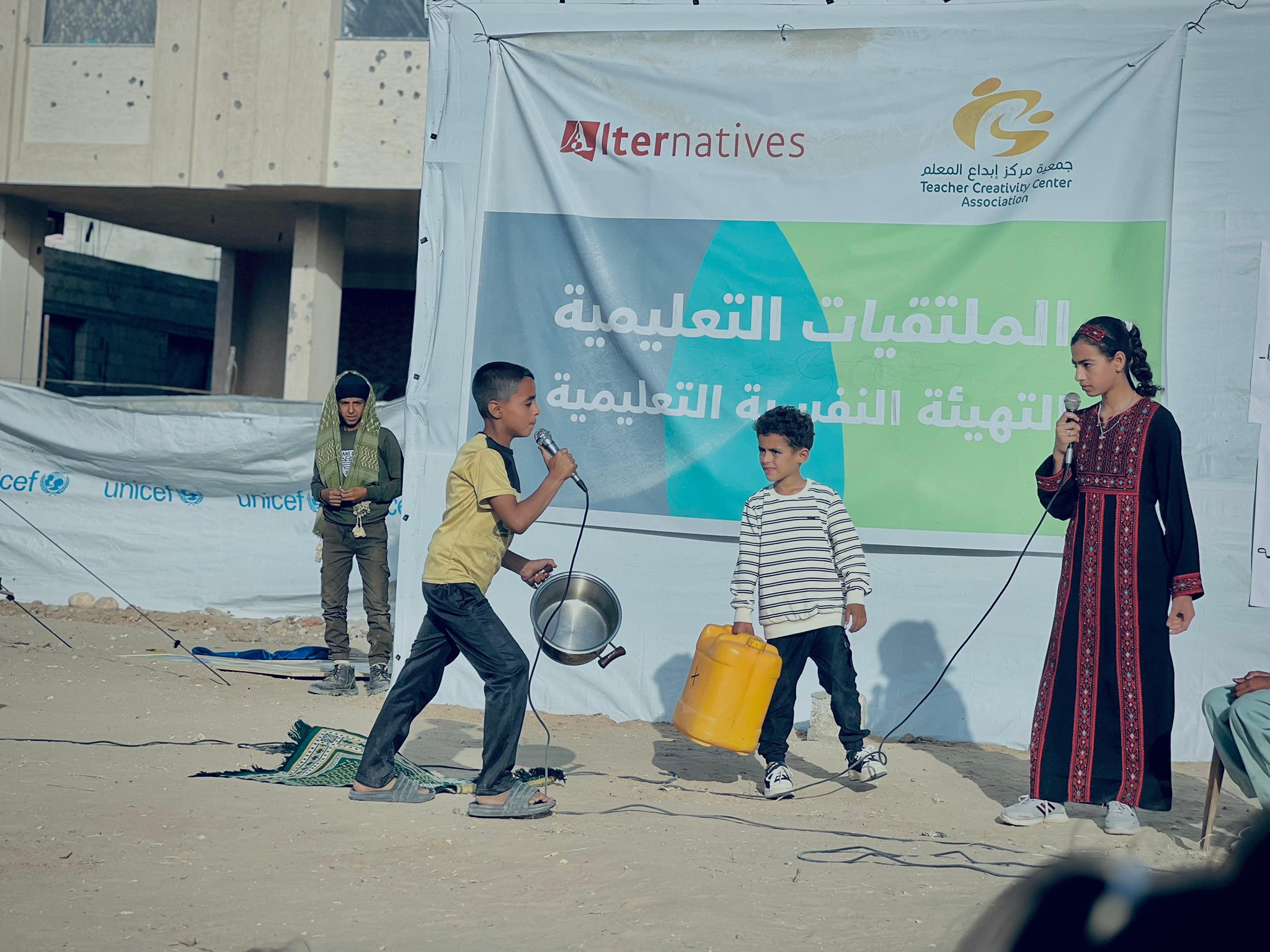 من داخل ملتقيات إبداع المعلم تواصلت رسائل الحياة بين المتطوعين والأطفال والأهالي والضيوف، افتتح الأطفال احتفالًا متميزًا عبّروا فيه عن حياتهم وواقعهم وآمالهم ونظرة الأمل بمستقبلهم، رغم القصف والحرب، وعلى أصوات الطائرات عزف الأطفال تراثهم الفلسطيني وأرسلوا رسالة المحبة والسلام للعالم. وتنوعت فقراتهم الاستعراضية والفنية والمخرجات التربوية والنفسية التي أنجزوها خلال فترة المشروع ولمدة ثلاثة أشهر، حيث استفاد 250 طفلًا من الأطفال وأكثر من 200 سيدة من جلسات الدعم النفسي والترفيه والرعاية الذاتية، في هدف واضح لتحسين قدرة الأطفال والأهالي على تعزيز المرونة النفسية وتعزيز رسائل الصمود في وجه الظروف الصعبة.