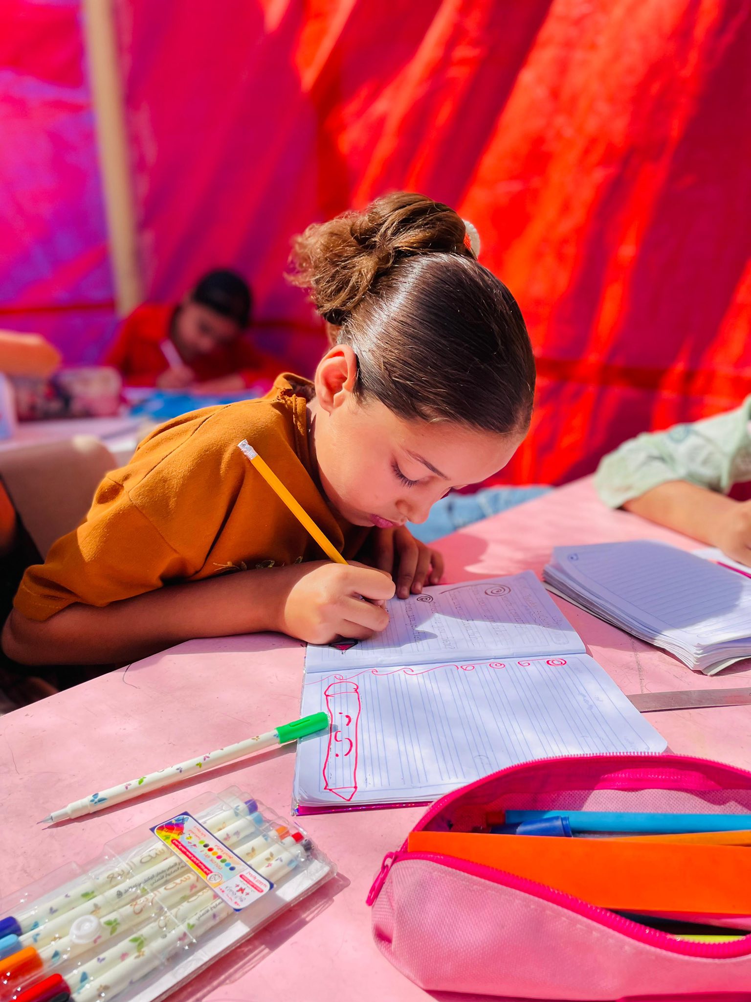 يواصل ملتقى المغازي التعليمي، التابع لجمعية مركز إبداع المعلم، فتح أبواب المساحات التعليميّة كل صباح لاستقبال مئات الطلبة من الصف الأول وحتى السادس الأساسي، ممن هجّرتهم الحرب أو فقدوا مدارسهم. ورغم استمرار القصف والدمار، يزداد عدد الطلبة الوافدين يومًا بعد يوم، حاملين حقائب صغيرة وأرواحًا تتوق إلى الأمان والمعرفة.