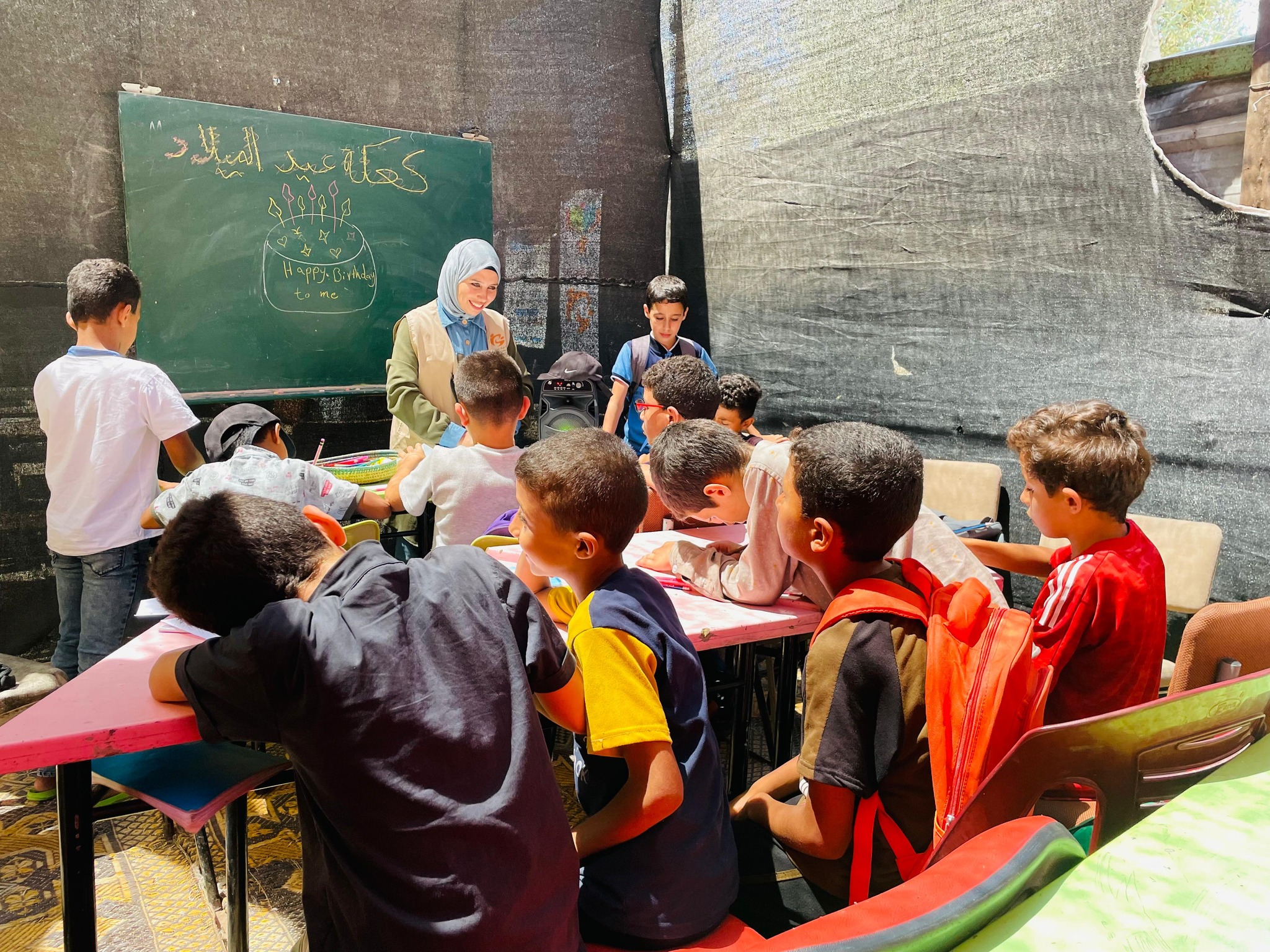 The project is based on the establishment of flexible and safe learning spaces, led by qualified volunteer teachers, aiming to create an enabling educational environment for displaced children in or near their areas of displacement. The project specifically addresses learning loss by focusing on the restoration of foundational skills in three core subjects: Arabic language, Math, and English language. In addition, it seeks to strengthen children’s sense of belonging and connection to their communities during this time of crisis.