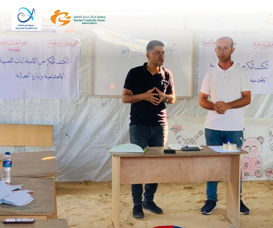 خان يونس – انطلقت صباح اليوم في ملتقى العطار التعليمي بمنطقة المواصي – خان يونس، دورة تدريبية متخصصة في "مهارات الكشف المبكر وإدارة الحالة النفسية"، تنفذها جمعية مركز إبداع المعلم بالتعاون مع جمعية نبض السلام للصحة النفسية المجتمعية ، وذلك ضمن جهود تعزيز استجابة الكوادر النفسية في ظل الظروف الطارئة التي تمر بها غزة.