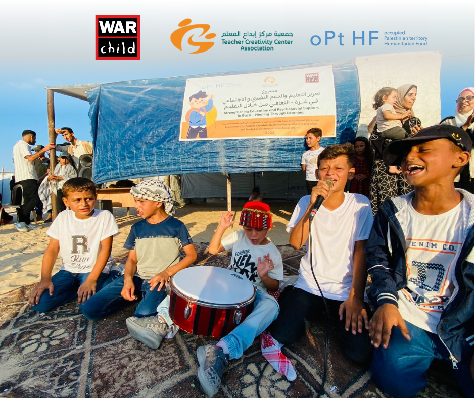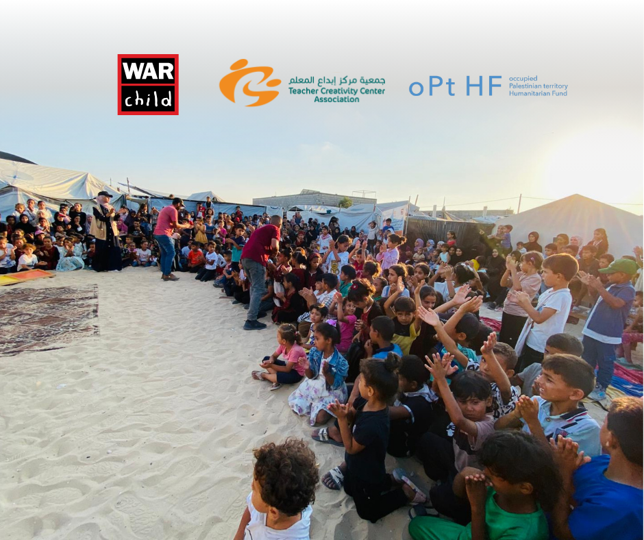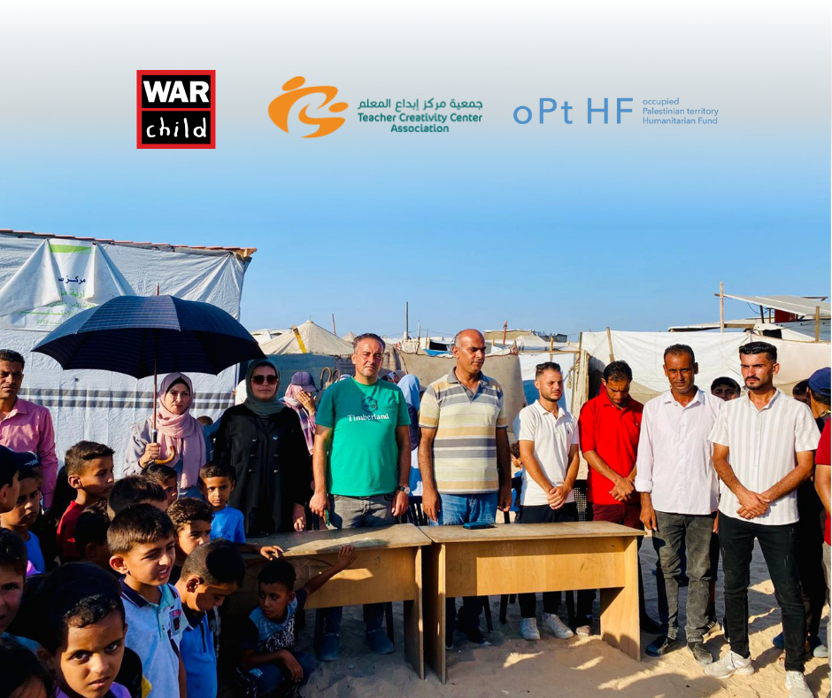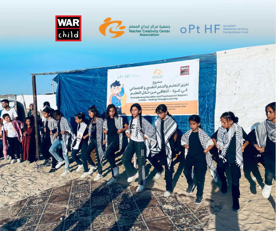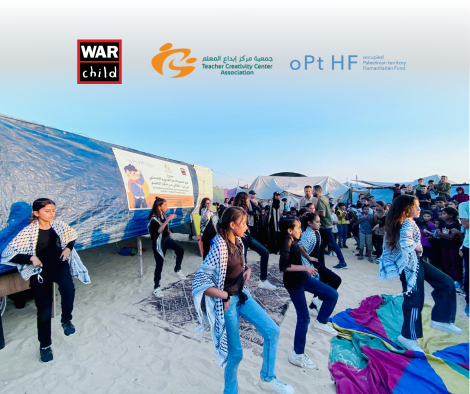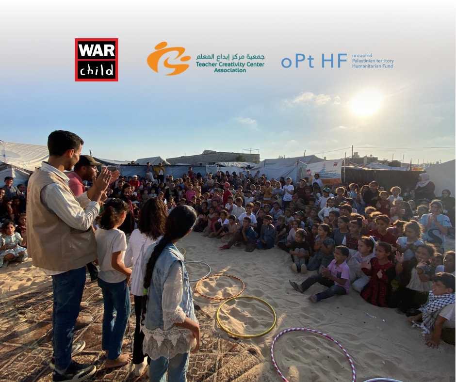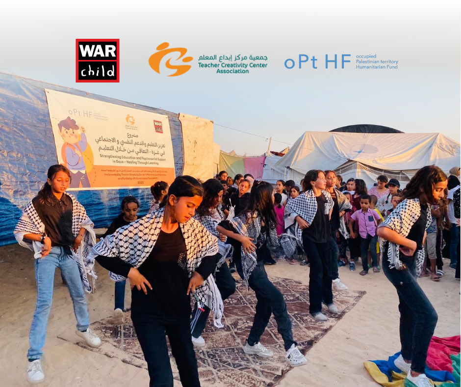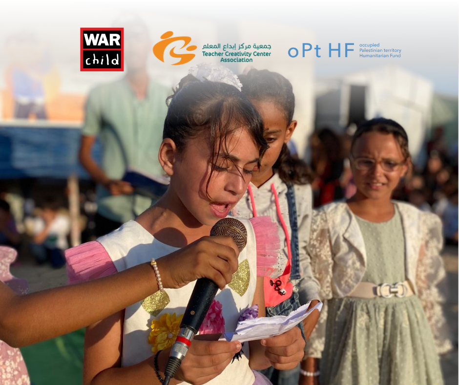 خان يونس – غزة | نظّمت جمعية مركز إبداع المعلم (TCC)، بالشراكة مع منظمة طفل الحرب (War Child)وبدعم من الصندوق الإنساني للأرض الفلسطينية المحتلة (oPt HF)، حفلًا ختاميًا بمناسبة اختتام المرحلة الأولى من مشروع "تعزيز التعليم و الدعم النفسي و الاجتماعي في غزة ، التعافي من خلال التعليم"، وسط خيام النازحين في محافظة خان يونس، وبحضور الأطفال المشاركين وعائلاتهم.