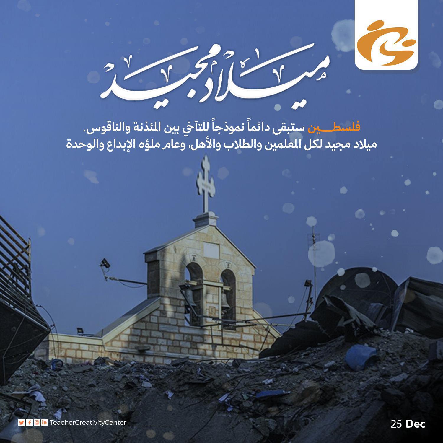 تتمنى جمعية مركز ابداع المعلم لكم ميلاد مجيد ، كل عام وانتم بخير